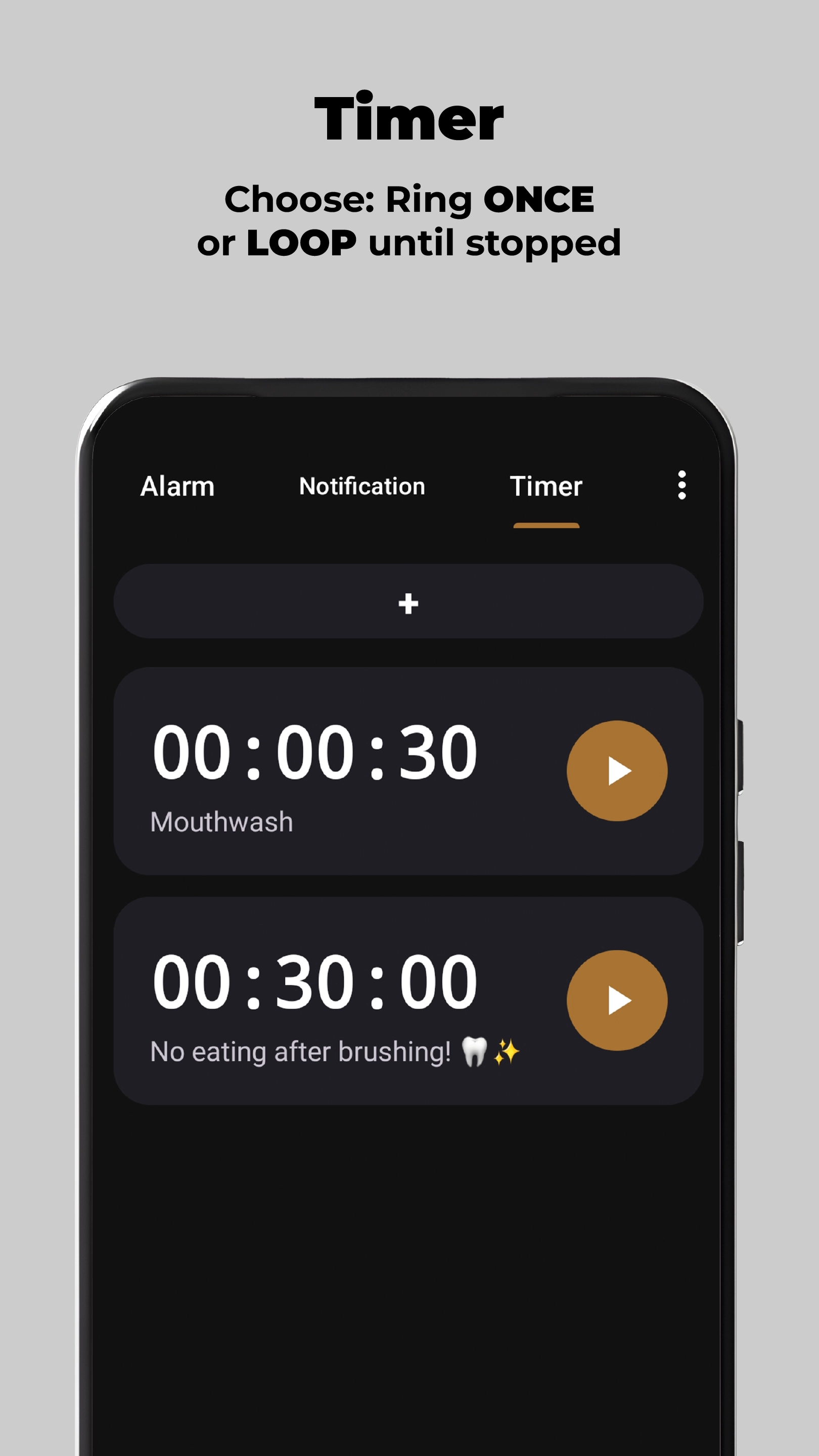 • Notification - To show the timer countdown notification and the ringing notification